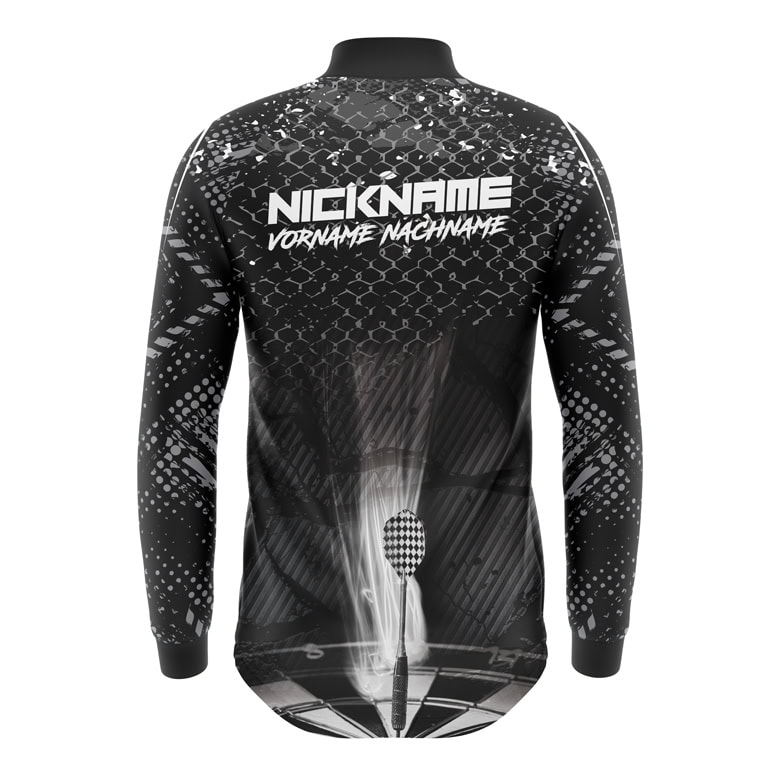 Die IUVENIS Dart Jacke Grey kombiniert ein modernes Schwarz-Grau-Design mit hochwertigem Premium-Polyester, sodass Klarheit, Komfort und ein professioneller Auftritt perfekt harmonieren. Ideal für Training, Turnier und Teams – personalisierbar mit Nickname sowie Vor- und Nachname.
