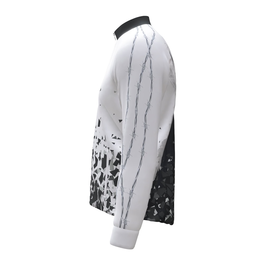 Die TERRENT Dart Jacke verbindet ein ausdrucksstarkes Schwarz-Weiß-Design mit sportlicher Performance, und genau dadurch entsteht eine Trainingsjacke, die Intensität und Individualität ausstrahlt. Während der Kontrast aus hellem Grundton und dunklen Elementen für eine klare, moderne Optik sorgt, verleihen fragmentierte Strukturen und geometrische Details dem Design eine dynamische, kraftvolle Wirkung. Dadurch wirkt die Jacke geheimnisvoll und präsent, bleibt jedoch gleichzeitig sportlich und professionell.