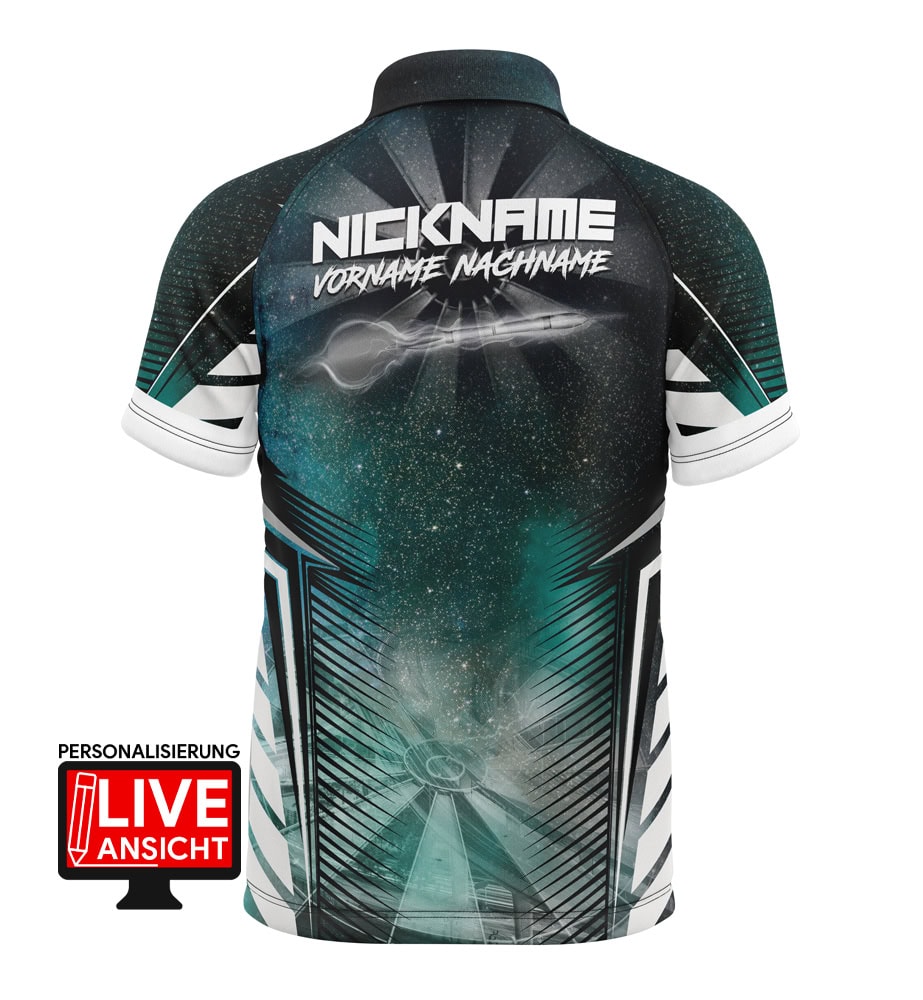 Das Astro Dart Trikot kombiniert ein futuristisches, kosmisches Design mit hochwertigem Funktionsmaterial und hohem Tragekomfort. Atmungsaktiv, flexibel und vollständig personalisierbar – perfekt für Spieler, die Präzision und Stil am Oche vereinen möchten. Wir verweisen auf unsere Größentabelle zur Größenermittlung.