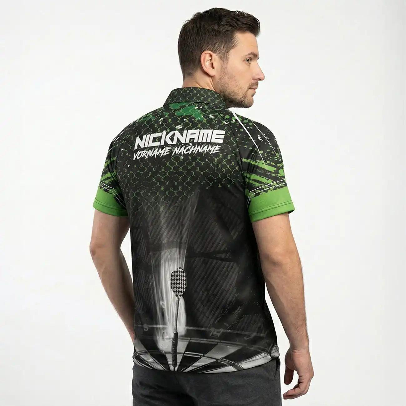 Professionelle Dartshirts in Premium-Qualität aus atmungsaktiven Polyesterstoff. Eine innenliegende Brusttasche ist für uns selbstverständlich. Diese ist bei unseren Dart Trikots feinsauber ausgearbeitet und bei uns grundsätzlich mit einem Reißverschluss versehen. Angenehmer Tragekomfort ist für uns selbstverständlich. Das Dart Trikot ist aus Hochleistungs-Polyester hergestellt. Der Schweiß wird vom Körper weg an die Gewebeoberfläche abgegeben und kann dort verdunsten.