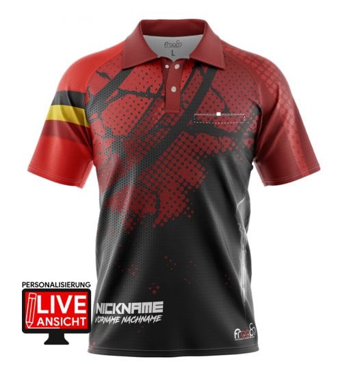 Professionelle Dartshirts in Premium-Qualität aus atmungsaktiven Polyesterstoff. Eine innenliegende Brusttasche ist für uns selbstverständlich. Diese ist bei unseren Dart Trikots feinsauber ausgearbeitet und bei uns grundsätzlich mit einem Reißverschluss versehen. Angenehmer Tragekomfort ist für uns selbstverständlich. Das Dart Trikot ist aus Hochleistungs-Polyester hergestellt. Der Schweiß wird vom Körper weg an die Gewebeoberfläche abgegeben und kann dort verdunsten.