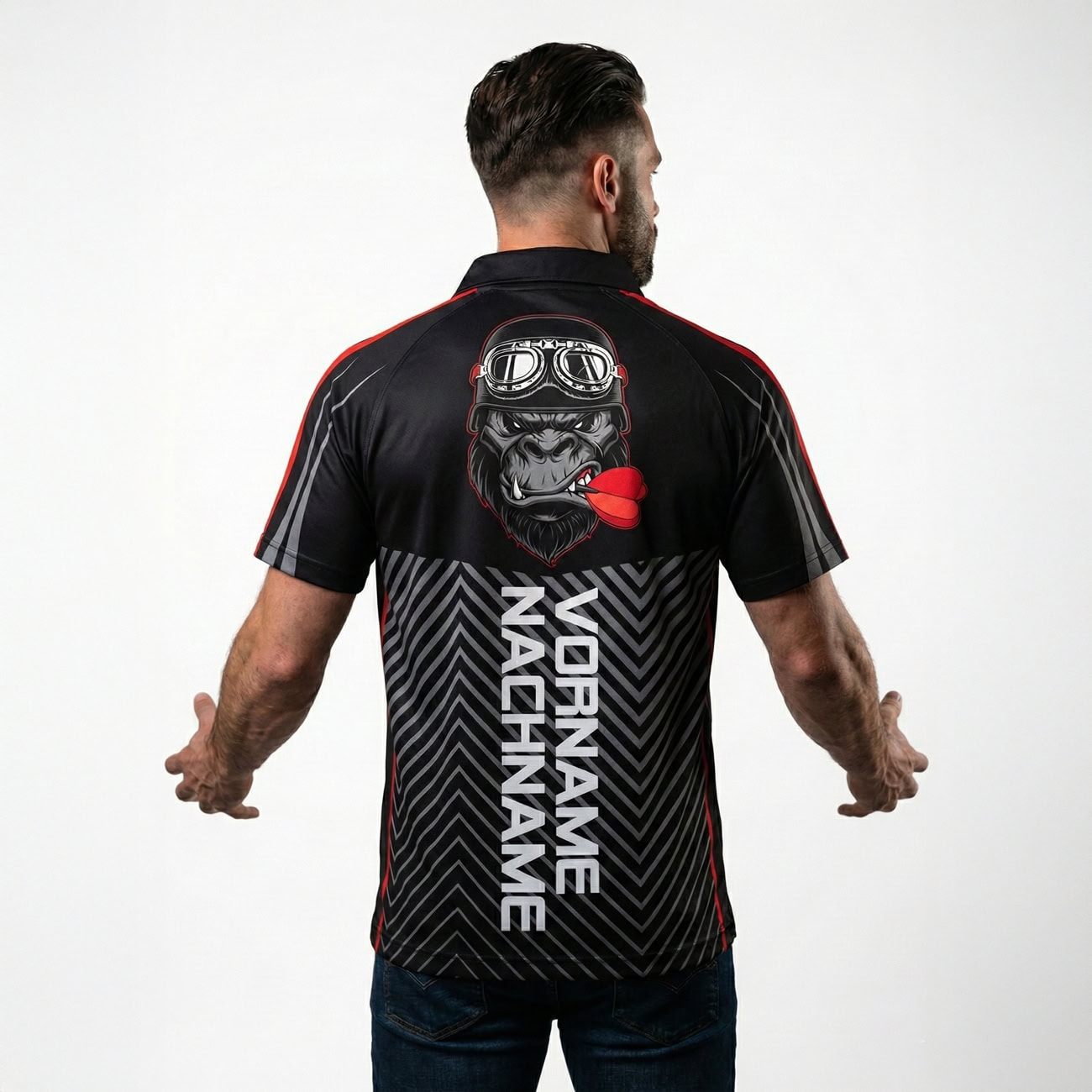 Das Dart Trikot Mixta steht für kompromisslose Präzision, urbane Stärke und einen markanten Look. Das kraftvolle Design kombiniert klare Linien mit einem dynamischen Muster und wird durch das dominante Gorilla-Motiv auf der Rückseite perfekt ergänzt. Ein Trikot für Spieler, die Kontrolle ausstrahlen und am Board keine Zweifel lassen.