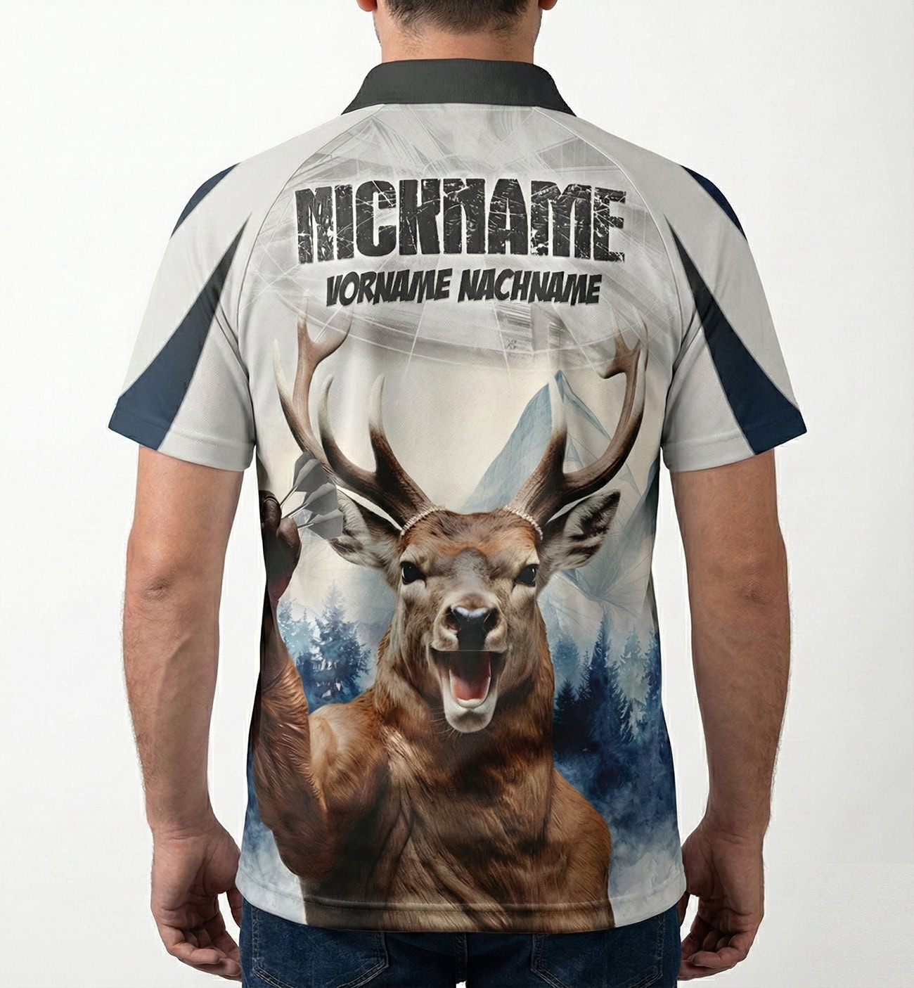 Holen Sie sich das perfekte Outfit für Ihre nächste Dart-Session mit unserem Sublimations Dart Trikot aus hochwertigem Polyester. Das Dart Shirt ist nicht nur atmungsaktiv und bequem, sondern auch mit einem coolen Hirsch Motiv bedruckt, das Ihren Dartspielen eine zusätzliche Portion Spaß verleiht. Unser Dart Trikot ist aus hochwertigem Polyester gefertigt und bietet Ihnen ein angenehmes Tragegefühl und uneingeschränkte Bewegungsfreiheit beim Werfen. Dank der Sublimationsdrucktechnologie bleibt das Motiv auch nach vielen Wäschen farbenfroh und strahlend. Das Design ist speziell für Dartspieler entworfen worden, um eine optimale Bewegungsfreiheit während des Spiels zu ermöglichen. Das Dart Shirt ist nicht nur für Wettkämpfe geeignet, sondern auch für Hobby-Spieler, die ein stylisches Dartshirt suchen. Unser Sublimations Dart Trikot ist perfekt für alle Dartspieler, die auf der Suche nach einem einzigartigen und stylischen Dartshirt sind. Bestellen Sie jetzt unser Dart Trikot und treten Sie in Ihren zukünftigen Dartspielen stilvoll auf! Das Dartshirt hat eine innenliegende Brusttasche. Das Trikot ist in verschiedenen Größen (S bis 5XL) erhältlich und kann mit dem Namen und Nicknamen/Teamnamen personalisiert bedruckt werden. Wir verweisen auf unsere Größentabelle zur Größenermittlung.