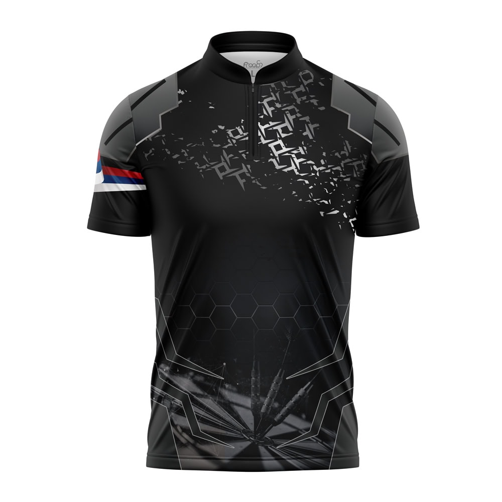 Professionelle Dartshirts in Premium-Qualität aus atmungsaktiven Polyesterstoff. Eine innenliegende Brusttasche ist für uns selbstverständlich. Diese ist bei unseren Dart Trikots feinsauber ausgearbeitet und bei uns grundsätzlich mit einem Reißverschluss versehen. Angenehmer Tragekomfort ist für uns selbstverständlich. Das Dart Trikot ist aus Hochleistungs-Polyester hergestellt. Der Schweiß wird vom Körper weg an die Gewebeoberfläche abgegeben und kann dort verdunsten.
