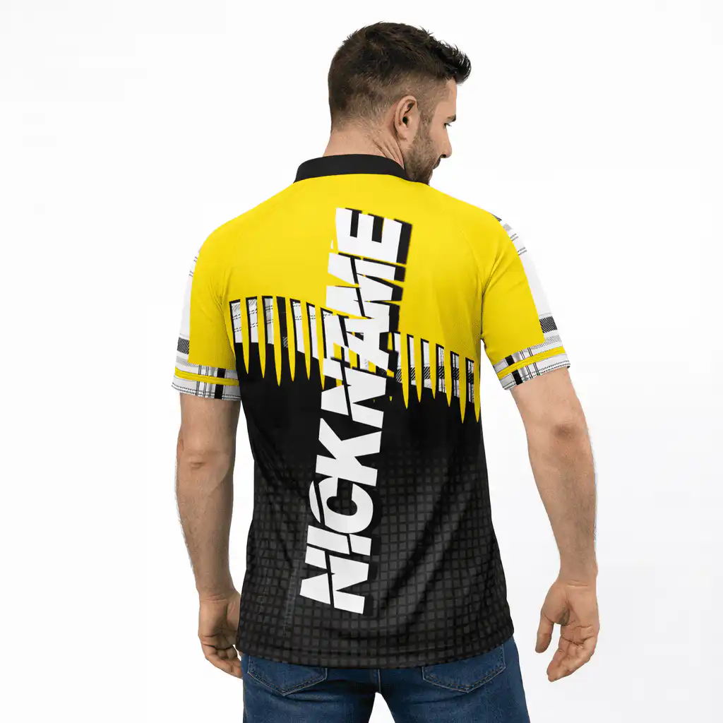 Das Dart Trikot ist der perfekte Begleiter für jeden ambitionierten Dartspieler. Hergestellt aus Hochleistungs-Polyester, bietet es optimalen Tragekomfort und Bewegungsfreiheit. Das Dart Shirt ist mit einem modernen Sublimationsdruck verziert, welcher eine lange Haltbarkeit garantiert und das Design des Trikots besonders lebendig und farbenfroh erscheinen lässt. Das atmungsaktive Material sorgt auch bei intensivem Spiel für ein angenehmes Körperklima und verhindert Überhitzung. Mit diesem Darts Trikot wirst du auf jeden Fall zum Blickfang an jedem Dartboard! Das Dartshirt hat eine innenliegende Brusttasche. Das Trikot ist in verschiedenen Größen (S bis 5XL) erhältlich und kann mit dem Namen und Nicknamen/Teamnamen personalisiert bedruckt werden. Wir verweisen auf unsere Größentabelle zur Größenermittlung.