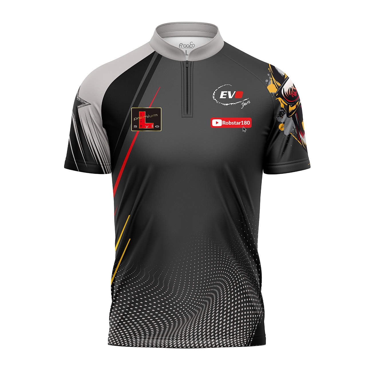 Das Robert „Robstar“ Marijanović Fan Trikot verbindet ein markantes Spielerdesign mit hoher Funktionalität, sodass Fans und Dartspieler ein Shirt erhalten, das sowohl sportlich aussieht als auch angenehm zu tragen ist. Das starke Motiv mit dem bekannten Robstar-Look sorgt für Aufmerksamkeit, während das Gesamtbild kraftvoll wirkt und perfekt zum Dartsport passt.